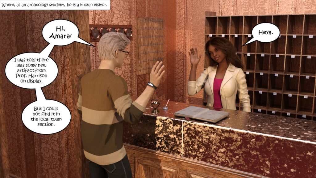 Some more talking before MIka heads over to the museum where he meets Amara the museum guide.