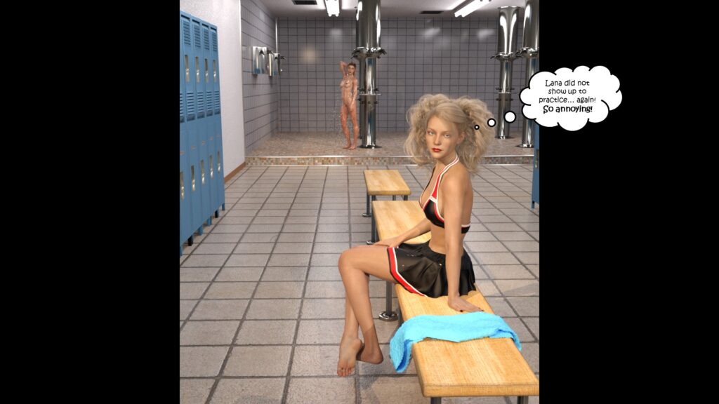 Chapter 4 starts in the cheerleader locker room at university – good start, right? ^^