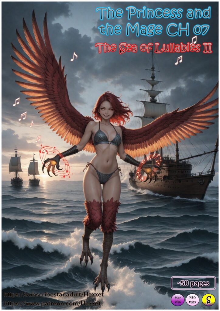 The Princess and the Mage – The Sea of Lullabys arc starts slow with Kaelen and the princess sharing a moment by the sea before chartering a ship across the sea… just to get attacked by Sirens – winged chicken girls with a beautiful voice. This chapter will be very story-focused, offering no sexy scenes, but I’m adding some pinups of Siren Sex to showcase what’s about to happen in the follow up chapters 😉